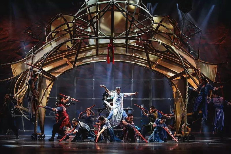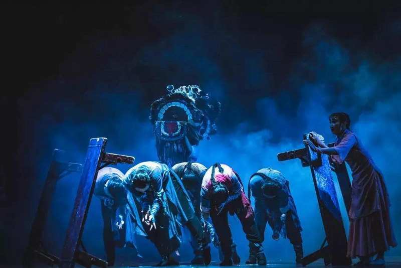 劇目的舞臺空間由巨型的竹編獅頭龍骨構成,配合燈光的方向、角度、光位高低的變換,在完美渲染劇情氛圍的基礎上完成舞臺空間的不斷切換。