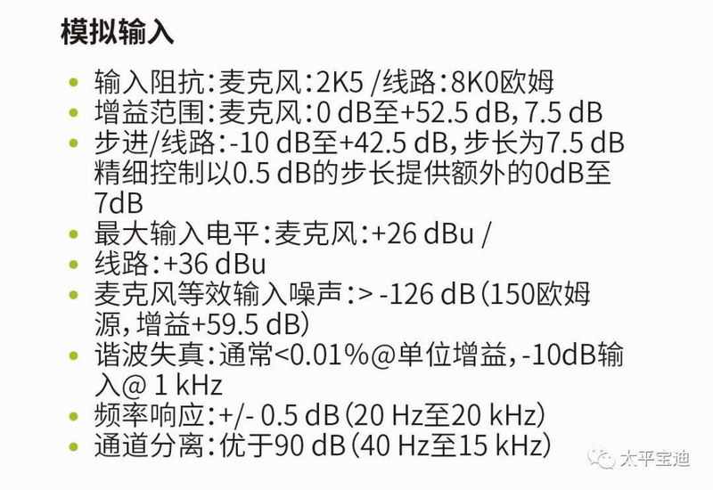 對(duì)IOS-XL麥克風(fēng)話筒放大器的控制均由SoundGrid Studio軟件完成,SoundGrid需要安裝在與其連接的電腦上。SoundGrid的麥克風(fēng)輸入部分可選擇48V幻象供電,并有兩個(gè)用于控制增益的旋鈕,一個(gè)以7.5dB的步幅調(diào)節(jié),另一個(gè)則可提供高達(dá)7dB的精細(xì)控制。八個(gè)模擬輸入中的每個(gè)輸入均可通過背面的XLR / TRS插孔用作麥克風(fēng)或線路輸入。IOS-XL的話筒放大器和耳機(jī)放大器與DiGiCo SD7調(diào)音臺(tái)中使用的話放和耳放相同。