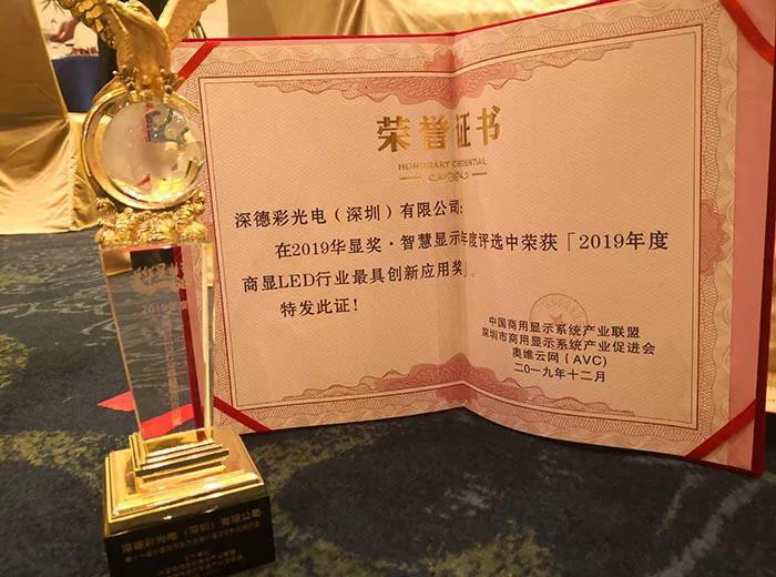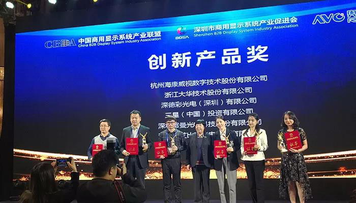 深德彩作為L(zhǎng)ED租賃顯示排名全球前三的企業(yè),不斷擴(kuò)大其他領(lǐng)域投入,在產(chǎn)品上主張創(chuàng)新專(zhuān)注,不斷研發(fā)新技術(shù)。而深德彩此次發(fā)布的基于二次封裝DCOB的Micro LED技術(shù)備受行業(yè)關(guān)注。作為此次領(lǐng)袖峰會(huì)和博覽會(huì)的優(yōu)秀企業(yè),深德彩同行業(yè)大咖海康威視、大華、三星共同榮獲產(chǎn)品創(chuàng)新獎(jiǎng)——2019年度商顯LED行業(yè)最具創(chuàng)新獎(jiǎng)。
