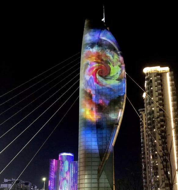 除了將采用雙層堆疊方式的投影機(jī)安裝在定制的塔狀建筑內(nèi)以保護(hù)它們免受惡劣天氣影響外,贏康科技的團(tuán)隊(duì)還優(yōu)化投影設(shè)計(jì),以解決主塔玻璃表面導(dǎo)致的投影光線損耗問題。團(tuán)隊(duì)的辛勤工作和對細(xì)節(jié)的一絲不茍最終凝結(jié)為明亮、逼真、栩栩如生的視覺效果,確保為游客呈現(xiàn)高質(zhì)量投影演出。該演出吸引了成千上萬名游客,使臨江橋塔獲得了“華東地區(qū)不容錯過的夜景”的新稱號。