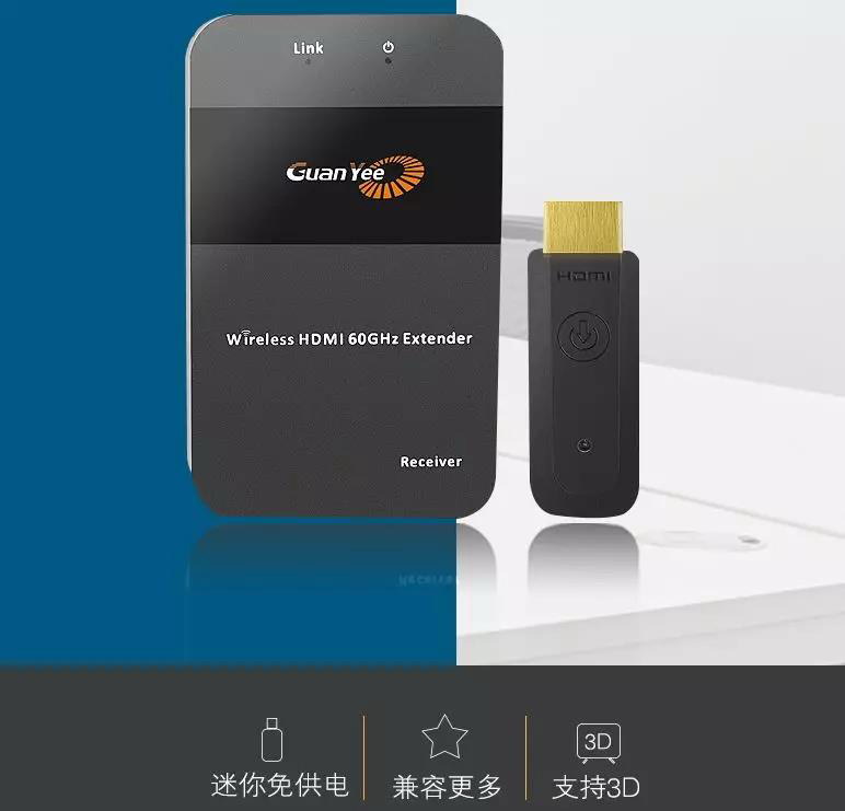 【冠藝GUANYEE】無線HDMI高清傳輸器:WD-106TR 新升級(jí)版 采用5G無線傳輸標(biāo)準(zhǔn),3Gbps傳輸速率滿足對(duì)高碼流傳輸?shù)男枨螅咔?080P無損畫質(zhì)無壓縮無延遲傳輸,真正實(shí)現(xiàn)免驅(qū)動(dòng)運(yùn)行和安裝,即插即用,輕松將我們的電腦、攝影機(jī)、藍(lán)光機(jī)等設(shè)備的高清音視頻信號(hào)無線傳輸至投影機(jī)、電視、大屏等顯示設(shè)備。解決了傳統(tǒng)布線繁雜、施工不便以及接頭易損的困擾。
