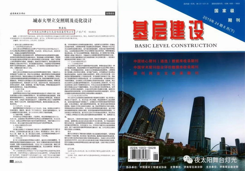 廣東夜太陽集團公司研發(fā)部原創(chuàng)撰稿“城市大型立交照明及亮化設(shè)計”與“基于PLC的舞臺燈光控制系統(tǒng)設(shè)計”登上國家級期刊《基層建設(shè)》及《電力設(shè)備》!