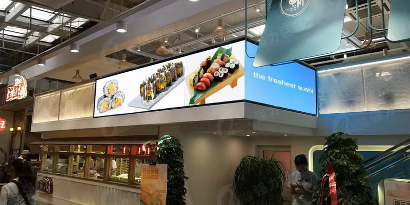 LED顯示屏可以安裝在餐廳的最為顯眼的位置。一塊在對的位置播放恰當(dāng)內(nèi)容的屏幕,能夠成為餐廳真正字面意義上的“活招牌”。不僅能顯示菜單項目,還可以顯示菜品的營養(yǎng)信息和成分;另外還能提供食品的動態(tài)圖像和視頻,或者可以在顧客享用美食的同時,餐飲店向顧客分享自己的品牌故事,讓更多顧客了解、進(jìn)而認(rèn)同該餐飲店。