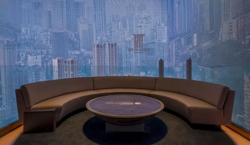 落座后大門徐徐關(guān)閉,沙發(fā)旋轉(zhuǎn),客廳上升,高達(dá)9米,沿途中6只 B&0 BEOLAB 高品質(zhì)音柱和1只 Mayasound 低音音箱,烘托出環(huán)境聲,由 iPad 觸控全部設(shè)備。面向安裝偏差不超過3mm 視寬720° 總面積130M² 的LED環(huán)幕,在古典樂章中,十八梯的歷史風(fēng)貌重現(xiàn)、現(xiàn)代化市容映入眼簾,讓人從老重慶的煙火氣中放眼現(xiàn)代高科技的未來。