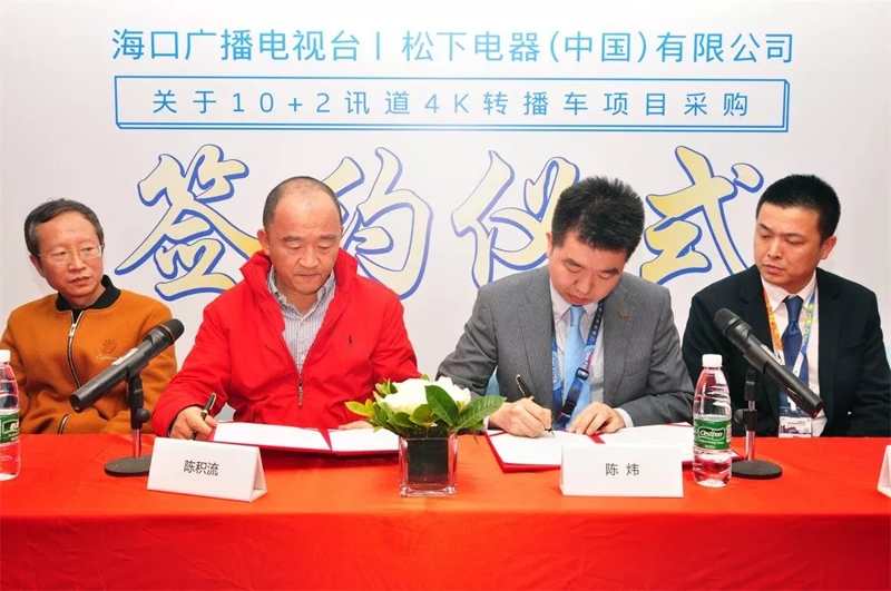 2019年3月22日,松下電器和海口廣播電視臺(tái)在CCBN2019展會(huì)上進(jìn)行了10+2訊道4K轉(zhuǎn)播車項(xiàng)目簽約儀式。出席此次活動(dòng)的領(lǐng)導(dǎo)有: