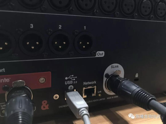 用網線連接調音臺和個人監(jiān)聽器,網線的一頭插入SQ調音臺的SLink 網口。