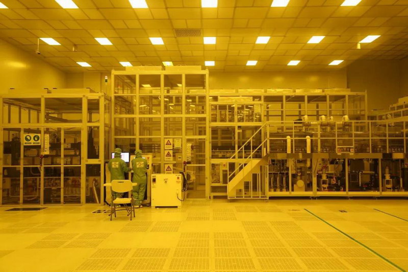 整個產(chǎn)線的潔凈度要求非常高,每立方英尺0.5微米的顆粒物小于100個,因此產(chǎn)線里設(shè)置了無塵室循環(huán)系統(tǒng),部分地板和天花板上的小孔是密集通風口,循環(huán)風從上往下吹,可帶走熱量、灰塵等影響潔凈室環(huán)境的物質(zhì)。