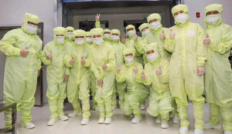 ▲媒體記者們身穿潔凈服參觀柔宇產(chǎn)線