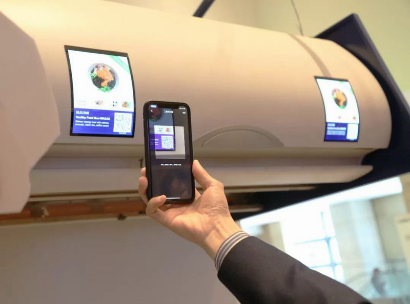 ▲柔宇聯(lián)手空客展示的全球首創(chuàng)高清、超薄行李架柔性屏