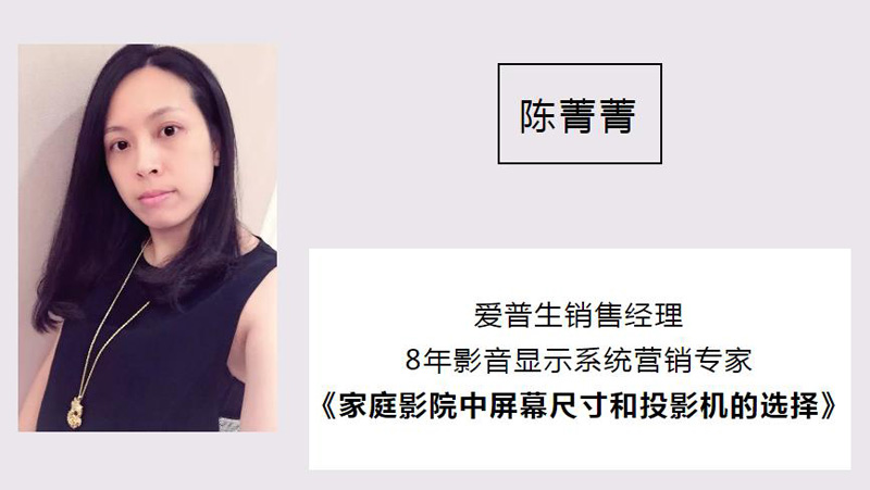 陳菁菁 愛普生銷售經(jīng)理 8年影音顯示系統(tǒng)營銷專家 《家庭影院中屏幕尺寸和投影機(jī)的選擇》