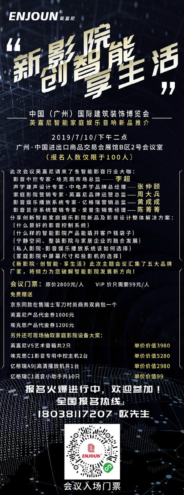 周大兵 英嘉尼品牌運(yùn)營總監(jiān) 7年國家高級講師 6年影音行業(yè)營銷專家 《什么樣的智能影院產(chǎn)品能撬開客戶錢袋子》