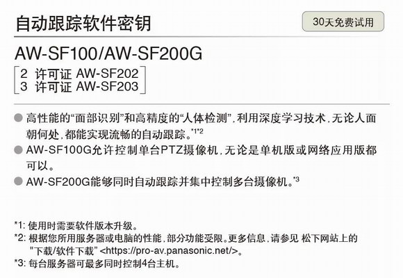 近期更將有運用深度學(xué)習(xí)技術(shù)推出的最新版自動跟蹤軟件可供選購,實現(xiàn)高性能的“面部識別”和高精度的“人體檢測”。軟件免費試用期30天吶!