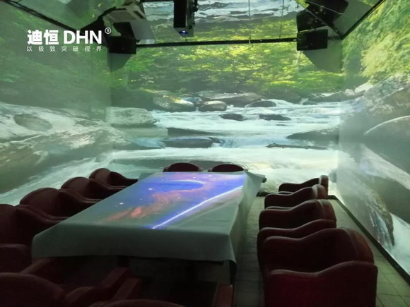 在餐廳:在節(jié)日里沉浸互動(dòng)式投影是不可或缺的,浪漫的星空,潺潺的流水,光影加上餐廳,讓你身臨其境;普通的桌面變得鮮活起來,成為一個(gè)娛樂中心和信息資訊平臺(tái)。食客可在節(jié)日餐廳的互動(dòng)投影上觀看美食制作,以及點(diǎn)餐,并且在進(jìn)餐過程中,通過投影互動(dòng),打造沉浸式空間,讓食客仿佛置身于各種場(chǎng)景中就餐,趣味連連!
