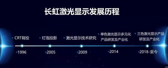 1996年,長虹CTR背投問世,掀起大屏電視的熱潮,于此,長虹一直投身于投影顯示的研究。2008年,率先家電品牌開啟激光顯示技術的研究及儲備。2014年,第一代激光影院率先問世,開啟了長虹激光自主研發(fā)、制造、自主創(chuàng)新突破之路。2016年5月,長虹激光技術團隊攻堅破難,率先實現(xiàn)激光光機自主設計與生產,同年12月領先行業(yè)打破鏡頭及菲涅爾膜片國際壟斷,實現(xiàn)自主化。2017年,產能再升級,打造年產能高達10萬臺的6000平米廠房,進入激光產業(yè)第一梯隊。