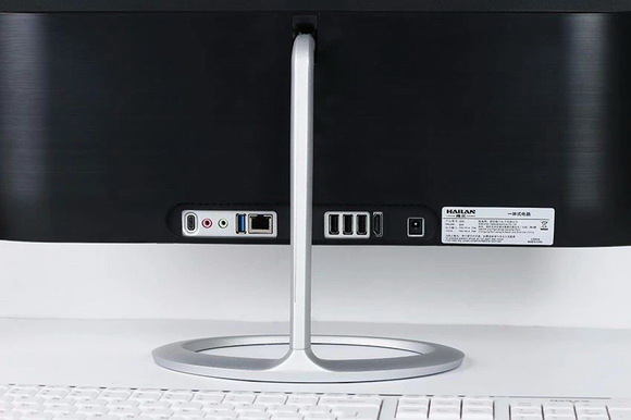 而如此驚艷的觀感可不止是海蘭Q40的正面,無論從側(cè)面還是背面看都同樣令人驚訝,設(shè)計師怎么能將一體機(jī)做得如此簡約精致呢?甚至從背面看也未必能一眼就看出是一體機(jī),而整機(jī)在黑色面板為主的設(shè)計下,還獨(dú)特的配以一個專利設(shè)計的銀色底座。無論從任何角度來看這個底座,都令人有點(diǎn)難以置信,如此極簡的線條,居然能支撐起一個屏幕,而且是一體機(jī)的屏幕,后面還有主機(jī)配件哦。