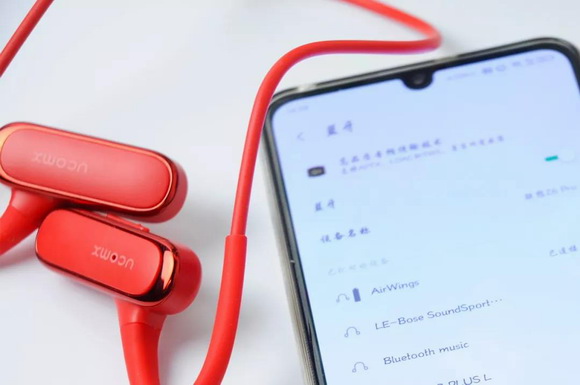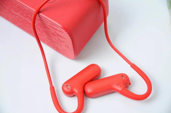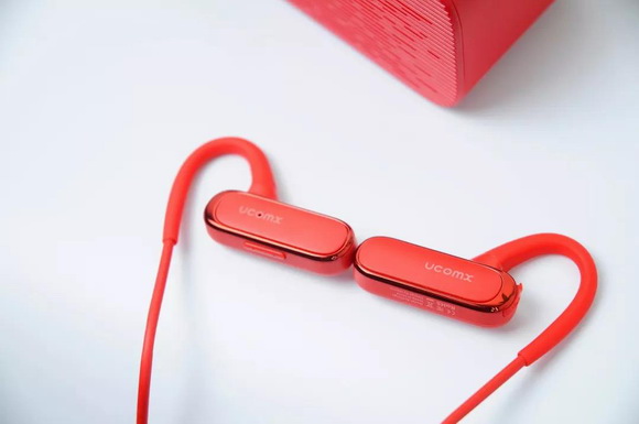 紅色款是個人比較喜歡的顏色,年輕有活力讓人有眼前一亮的感覺。模塊正面印有“UCOMX”的Logo字樣,反光亮條挑邊,科技感十足,由于沒有了入耳式耳機的前腔結(jié)構(gòu)使得整個耳機的尺寸和體積都大幅下降,Airwings僅重17.7克,日常佩戴幾乎沒有負重感。