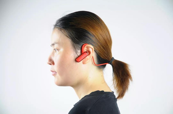 整體佩戴還是比較方便,不過由于并沒有入耳式腔體所以佩戴時需要將發(fā)聲單元緊貼耳邊的顱骨,需要注意的是如果是第一次體驗這類外放不入耳運動藍牙耳機的用戶可能會略有不適應(yīng)。