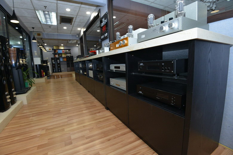 相對于對面的樂頌坊的店鋪,這邊的三間規(guī)模和產(chǎn)品顯然大上很多。這三間店鋪陳列有:丹麥丹拿DYNAUDIO、意大利歌劇之聲DIAPASON、丹麥貴豐GRYPHON、美國柏斯Pass Laboratories、德國AA ACCUSTIC ARTS、法國YBA、英國音樂傳真MUSICAL FIDELITY、英國ONIX、丹麥柯普蘭Copland、美國詩醉Conrad-johnson、奧地利寶碟Pro-ject等產(chǎn)品——可以說,樂頌坊的精髓都在這里呢。