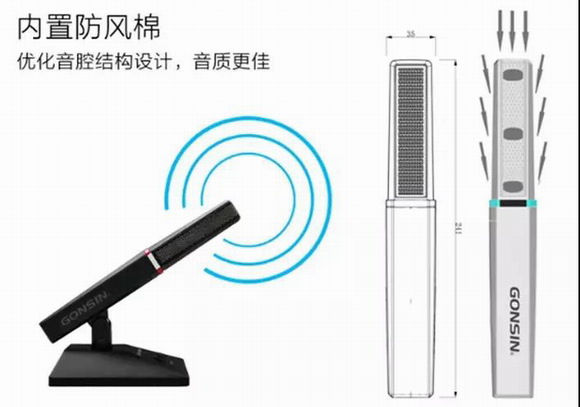 在外觀設計上這款產品采用了柱形咪桿搭配方形底座,整體效果彰顯著大氣、硬朗的風格。方柱形的咪桿結構,為核心部件的選型及內部聲腔的設計上提供了充分的條件。