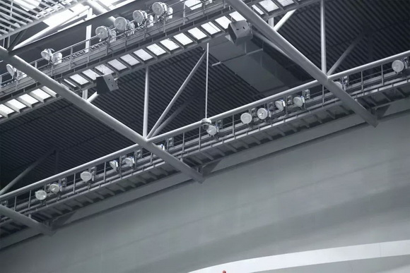 整個工程采用BIM和專業(yè)技術(shù)。通過安裝環(huán)境的詳細(xì)分析,吊掛結(jié)構(gòu)、連接件的可靠性試驗,鋼絲繩在浸泡條件下的防銹性能測試等,對施工過程進行實時掌控。