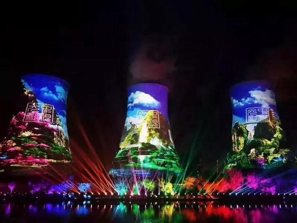 洋河河谷蝶戀花文旅小鎮(zhèn)的設(shè)計(jì)師們,另辟蹊徑,堪堪改變了發(fā)電廠和冷卻水塔的命運(yùn)軌跡——以三座水塔為背景,在河面上打造一座移動的燈光藝術(shù)舞臺,形成獨(dú)特的城市夜景。并以此為基礎(chǔ)打造“蝶戀花激光秀”和特色文旅演出品牌——光影秀由20臺超高亮度激光投影機(jī)擔(dān)綱。