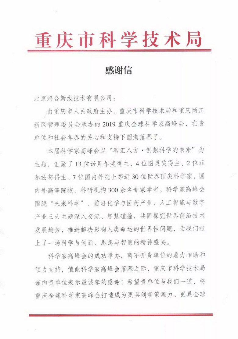 重慶市科技局特地為newline北京總部公司發(fā)來了一封感謝信。同時(shí)表示,希望之后的對(duì)外窗口都使用newline會(huì)議平板。