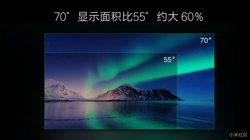 Redmi紅米電視首款產(chǎn)品采用70英寸4K超高清大屏設(shè)計(jì),其顯示面積比主流55英寸大60%以上,更大的視野優(yōu)勢(shì)帶來(lái)更震撼的沉浸感。