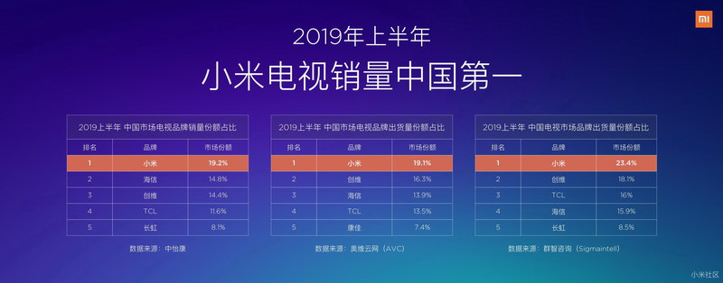 根據(jù)中怡康、奧維云網(wǎng)、群智咨詢(xún)?nèi)笳{(diào)研機(jī)構(gòu)統(tǒng)計(jì),小米電視取得了2019上半年銷(xiāo)量中國(guó)第一的成績(jī)。基于小米在電視行業(yè)的6年雄厚經(jīng)驗(yàn)積累,Redmi 紅米電視一經(jīng)推出,就站在巨人的肩膀上,為米粉提供又一優(yōu)質(zhì)可靠的選擇。