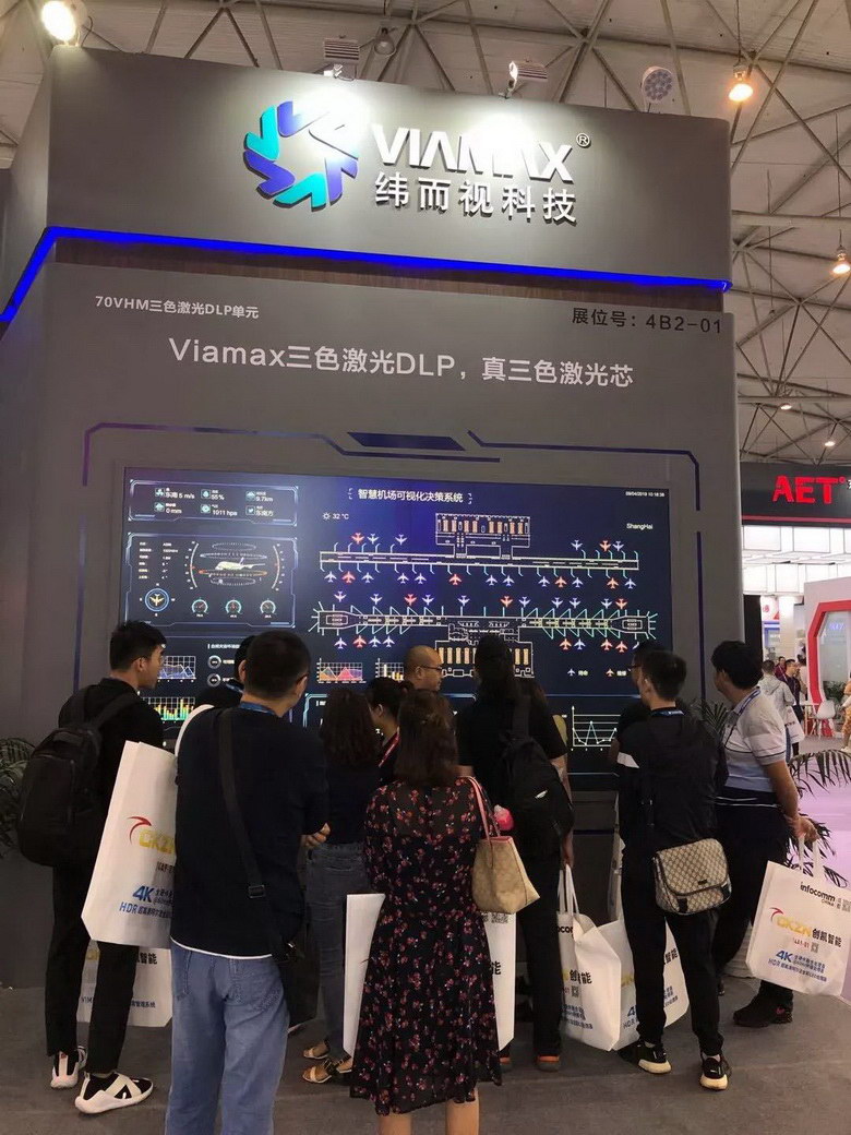展會現(xiàn)場,Viamax(緯而視科技) 三色激光DLP顯示產(chǎn)品,吸引了現(xiàn)場眾多來自各地及各個行業(yè)領(lǐng)域的系統(tǒng)集成商、工程商、最終用戶以及各家媒體等行業(yè)精英駐足,細(xì)致垂詢,絡(luò)繹不絕。