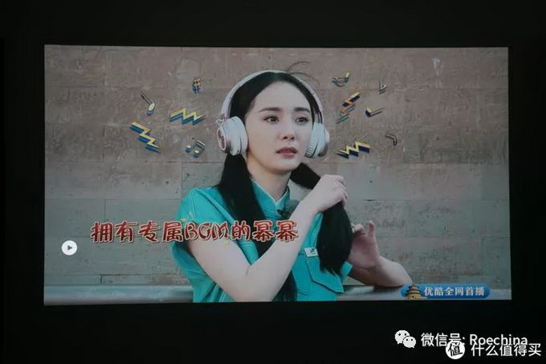 雖然現(xiàn)在4k資源原來(lái)越豐富,但是我們?nèi)粘_是無(wú)法做到4K全覆蓋,而4K資源還是主要集中在電影和少量電視劇方面,而我們?nèi)粘O猜剺?lè)見(jiàn)的綜藝節(jié)目還是以高清和1080P為主。而綜藝節(jié)目在兩臺(tái)投影上的表現(xiàn)有比較明顯的差異。整體上,4K分辨率的明基AK810N+銳度更高,在特效、字幕等處表現(xiàn)非常突出;另外,AK810N+投射的楊冪膚色更加紅潤(rùn)自然。