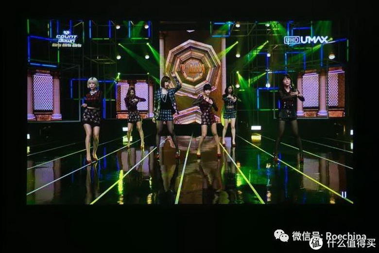 與靜態(tài)圖片對(duì)比一樣,4K視頻對(duì)比中,我又發(fā)現(xiàn)了愛(ài)普生CH-TW6300在綠色控制方面的問(wèn)題。同樣一個(gè)場(chǎng)景,分別接到兩臺(tái)投影投放,但是得到圖像差異非常大,愛(ài)普生CH-TW6300對(duì)綠色光線的渲染過(guò)于夸張,以至于畫(huà)面呈現(xiàn)整體偏綠的基調(diào),T-ARA成員的膚色都被映綠了……相比較而言,明基AK810N+的畫(huà)面看起來(lái)銳度更高,綠色光線并沒(méi)有喧賓奪主。