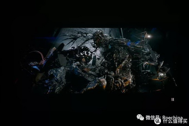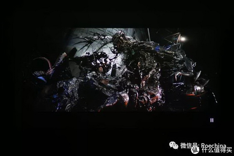 4k藍(lán)光的《毒液》,在這種昏暗的場(chǎng)景下,明基AK810N+ 4K HDR的優(yōu)勢(shì)盡顯,更強(qiáng)的明暗對(duì)比令畫(huà)面層次感非常強(qiáng),高光部位的突出,也讓畫(huà)面的整體觀感上了一個(gè)臺(tái)階。