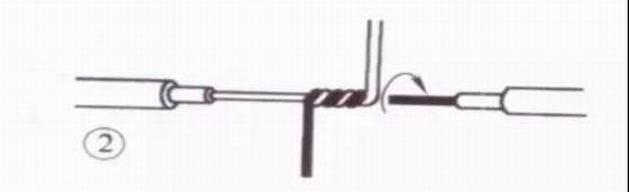 把細(xì)導(dǎo)線線頭在粗導(dǎo)線線頭上緊密纏繞5~6圈,彎折粗線頭端部,使它壓在纏繞層上,再把細(xì)線頭纏繞3~4圈,剪去余端,鉗平切口。