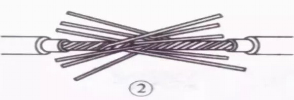 把兩傘骨狀線端隔根對(duì)叉,必須相對(duì)插到底。
