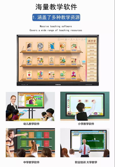 與傳統(tǒng)的電腦相比,教學(xué)一體機(jī)將液晶屏、觸摸屏、電腦主機(jī)、音響等等多種硬件集成到一個(gè)設(shè)計(jì)時(shí)尚的外殼里面,用戶可以通過在觸摸上進(jìn)行觸摸完成操作,告別傳統(tǒng)的粉筆+黑板。