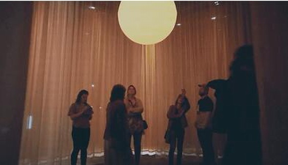 紗幕圍繞中間發(fā)光的橙色“太陽(yáng)”不停飄蕩,人們可以進(jìn)入其中與之互動(dòng)。