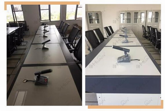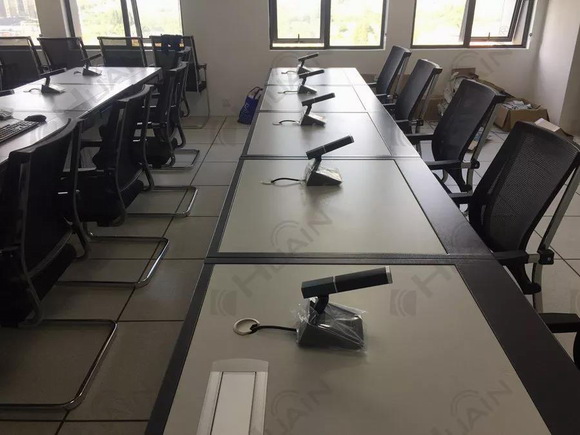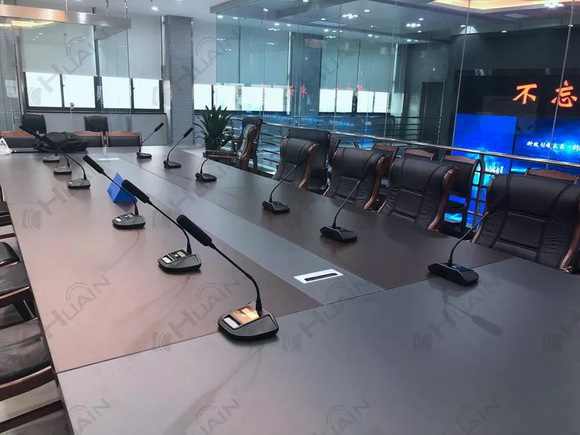 公安局會議廳主要用于部門內部會議、重要培訓學習以及任務安排統(tǒng)籌會議,從智能便捷出發(fā),同時會議桌臺面也需要整潔,該會議廳選用了HUAIN華音——雙振膜全數字觸控式會議產品----HY-6320S系列。