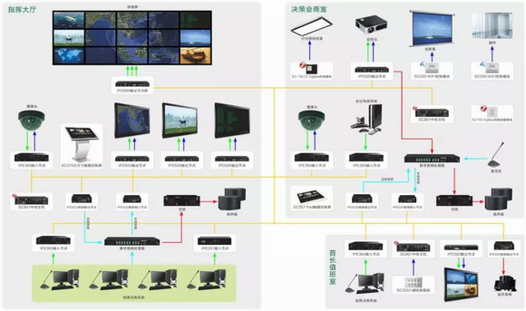 交警指揮中心需要對道路交通場景進行快速切換,對道路監(jiān)控場景進行自由切換,為實現(xiàn)交通事件下協(xié)調和指揮調度,滿足交通路面指揮和突發(fā)情況的需要,提高對交通事件處置能力,交警指揮中心采用HUAIN華音雙振膜會議系統(tǒng)、無線會議系統(tǒng)、擴聲系統(tǒng)以及可視化視頻管理系統(tǒng)的整體解決方案。