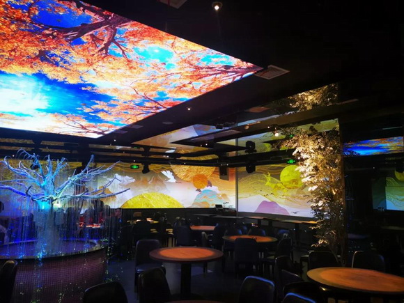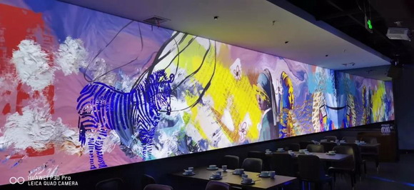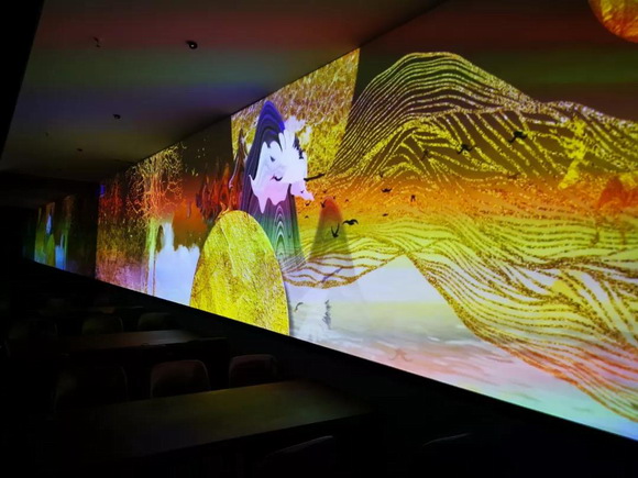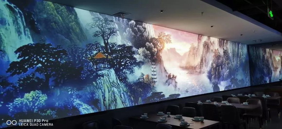 本項目總投影面積巨大,幾乎囊括了整個餐廳的全部主墻面,多通道融合系統(tǒng)配合先進的圖形處理、畫面渲染技術,呈現出來的畫面渾然一體,恢弘大氣。目之所及,皆是激光投影帶來的新奇體驗。