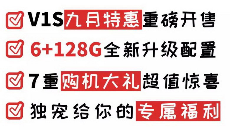 7重購機(jī)禮包免費送!9月V1S專享獨寵你!