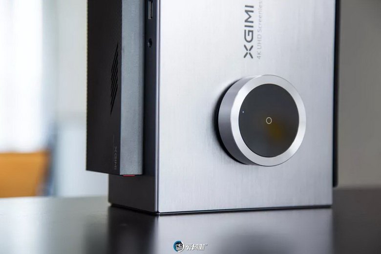 機(jī)身頂部,金屬拉絲的表面,摸上去很有金屬的質(zhì)感,以及一個(gè)既是呼吸燈又是放置 X-Remote 控制器的圓形,方與圓之間的結(jié)合,倒是有幾分靈動(dòng)感。