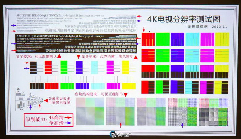 這里需要說(shuō)明下,實(shí)拍圖和實(shí)際場(chǎng)景觀(guān)感的效果可能會(huì)略有偏差,在分辨率測(cè)試圖中,總結(jié)就一個(gè)字——銳,是真的銳,邊緣的小字以及各種細(xì)節(jié),都非常清晰,倘若你之前看的是 1080P 的投影儀,看到 4k 之后,會(huì)有很明顯的差距,這種感覺(jué)就像讓一個(gè)近視者從沒(méi)帶眼鏡到帶上眼鏡的差距,不比不知道,一比嚇一跳;在色彩還原、可視角度、影調(diào)還原層次各方面的表現(xiàn)也是屬于現(xiàn)在的主流水平,但是令人印象深刻的還是畫(huà)質(zhì),銳不可擋。