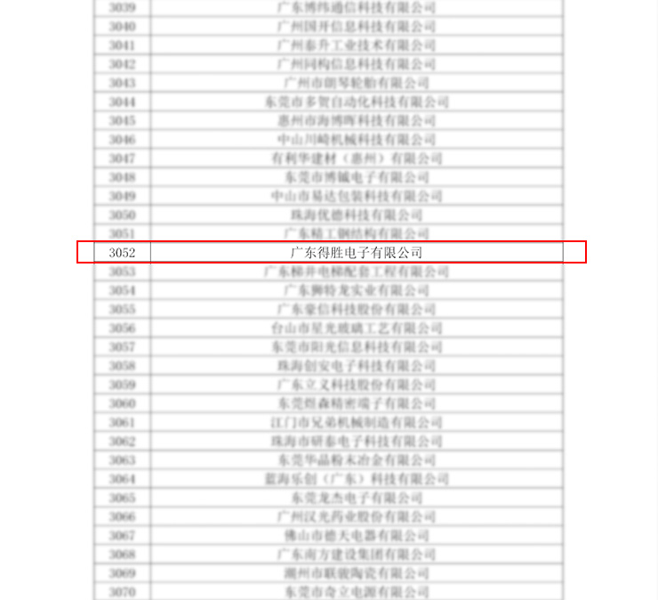 根據(jù)國家《高新技術(shù)企業(yè)認(rèn)定管理辦法》和《高新技術(shù)企業(yè)認(rèn)定管理工作指引》相關(guān)規(guī)定,廣東得勝電子有限公司被認(rèn)定為“高新技術(shù)企業(yè)”,這也是得勝公司繼2007年,2016年之后,再次獲評該榮譽稱號。近日,高新技術(shù)企業(yè)認(rèn)定管理工作網(wǎng)已公示廣東省2019年第一批企業(yè)擬認(rèn)定高新技術(shù)企業(yè)名單公示,得勝電子榜上有名。