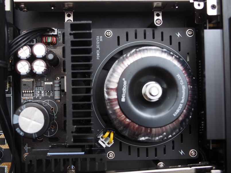 這次Q50由于采用了雙硬盤倉和線電,數(shù)字和模擬部分分開的PCB設(shè)計(jì),讓其機(jī)箱內(nèi)看起來還是滿滿的,沒有出現(xiàn)大大的機(jī)箱空蕩的內(nèi)容的問題。開博爾