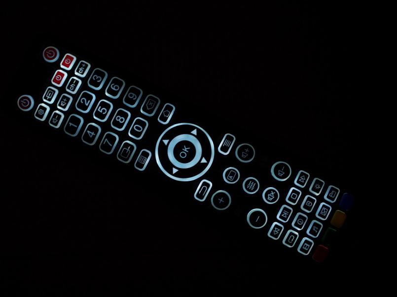 背光藍(lán)牙遙控器,這個(gè)體積比較大,但握持手感還不錯(cuò),字幕,音軌的常用功能也有獨(dú)立按鍵,還支持學(xué)習(xí)功能,只是需要3節(jié)AAA電池。
