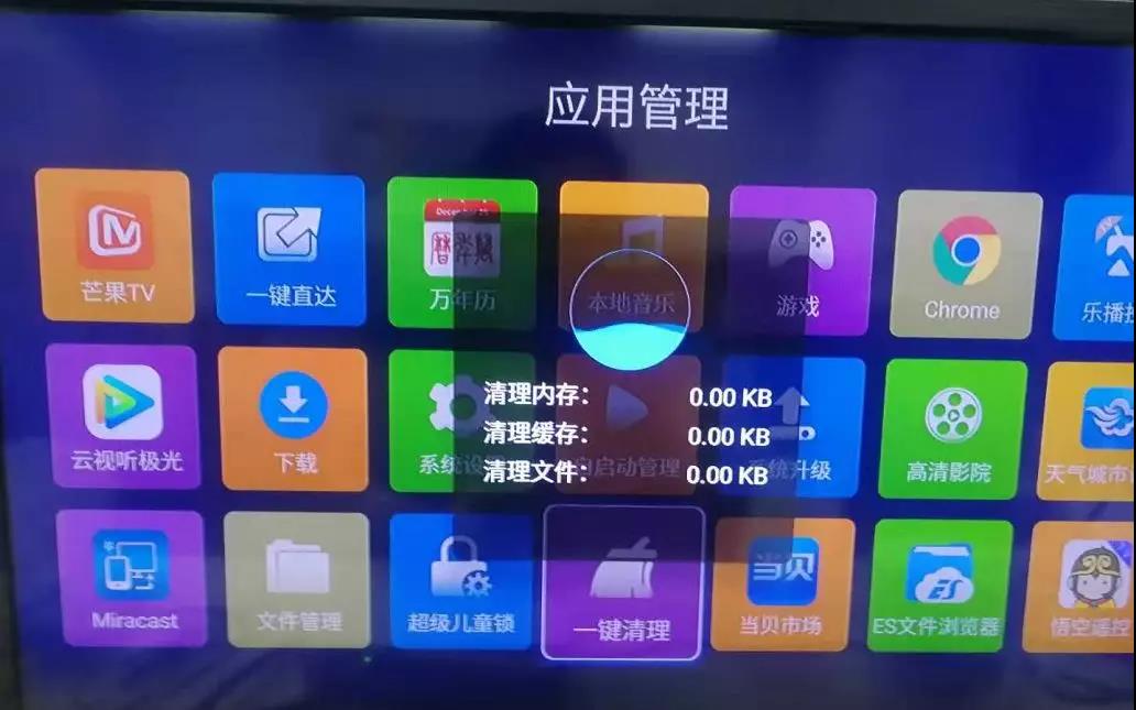安裝應(yīng)用、聽首歌、看部電影等等,都會產(chǎn)生很多垃圾文件,占用緩存,導(dǎo)致電視變慢。所以點(diǎn)擊“應(yīng)用管理”—“一鍵清理”即可。