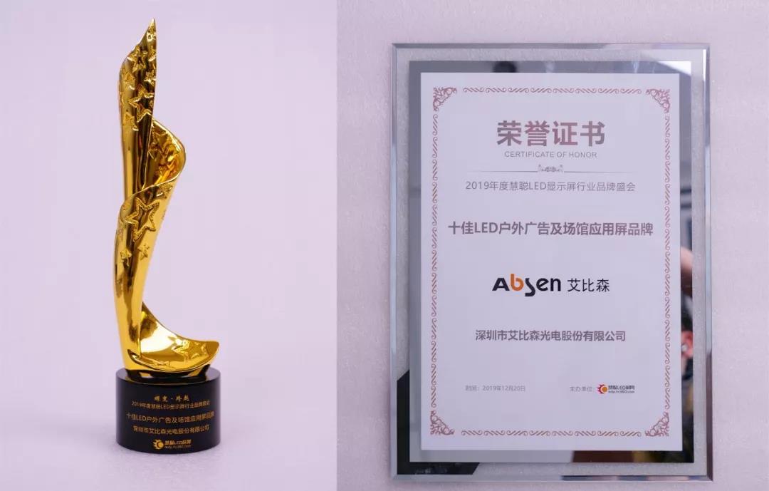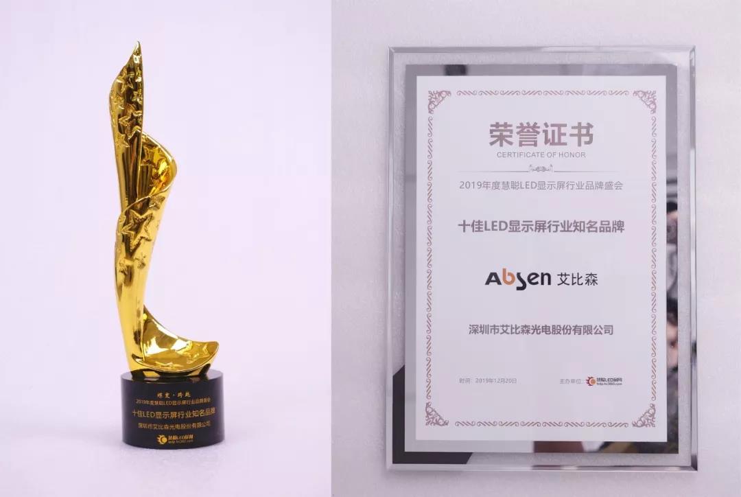 2019年的慧聰LED顯示屏行業(yè)品牌盛會(huì)上,艾比森更是雙喜臨門(mén),同時(shí)蟬聯(lián)了2019年年度“十佳LED戶外廣告及場(chǎng)館應(yīng)用屏品牌”及“十佳LED顯示屏行業(yè)知名品牌”兩項(xiàng)大獎(jiǎng)。