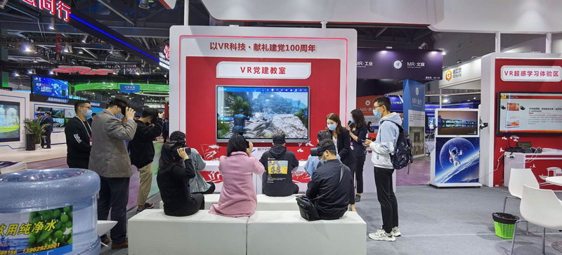 VR黨建學(xué)習(xí)角內(nèi)置百余節(jié)黨建內(nèi)容。展會現(xiàn)場有的體驗(yàn)者置身于革命戰(zhàn)爭中,體驗(yàn)強(qiáng)渡金沙江、與革命先輩并肩征戰(zhàn)淮海戰(zhàn)役、參與到遵義會議中總結(jié)經(jīng)驗(yàn)教訓(xùn)……也有的體驗(yàn)者以參觀博物館的游覽方式,深入了解新中國的發(fā)展歷程與偉大成就。對于這種足不出戶身臨其境地體驗(yàn)方式,體驗(yàn)者紛紛表示其帶來的感染性參與感都非常強(qiáng)烈。