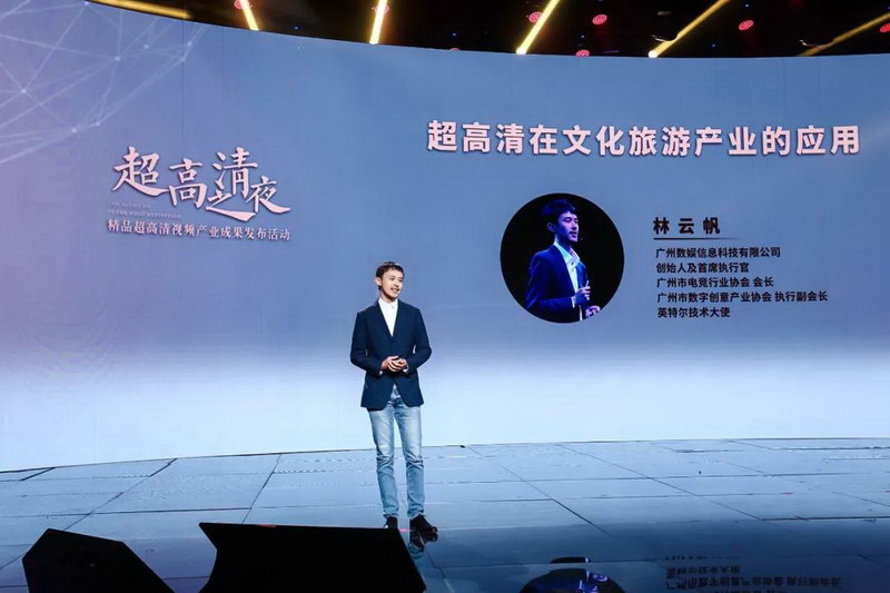今天(16日),由廣東省廣播電視局指導(dǎo),廣州市文化廣電旅游局、廣州市工業(yè)和信息化局、廣州市廣播電視臺(tái)主辦的“超高清之夜”——精品超高清視頻產(chǎn)業(yè)成果發(fā)布活動(dòng)在廣州花果山超高清視頻產(chǎn)業(yè)特色小鎮(zhèn)舉行。數(shù)娛科技總裁林云帆受邀出席大會(huì)并發(fā)表《超高清在文化旅游產(chǎn)業(yè)的應(yīng)用》專(zhuān)題演講。