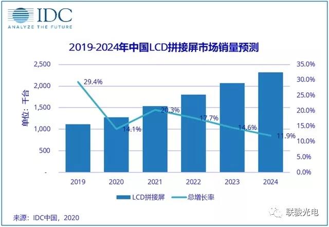 最近幾年隨著成本逐步降低,LCD以及LED拼接屏呈現(xiàn)了高速增長的趨勢,數(shù)字化的轉(zhuǎn)型需求更推動了這一數(shù)字的持續(xù)擴(kuò)張, 由于疫情影響,2020年初拼接屏增速略微放緩,但隨著國內(nèi)疫情得以控制,新基建等項(xiàng)目的逐步開展,2021年市場將呈現(xiàn)更快的增長,預(yù)計(jì)增速達(dá)到20.3%。